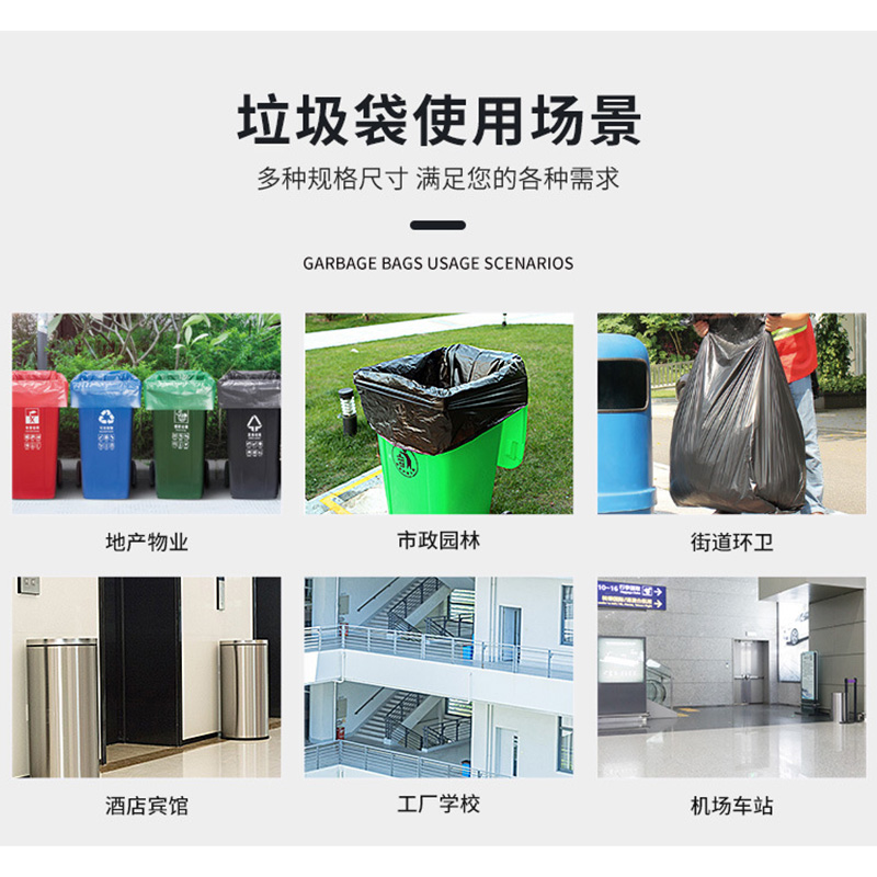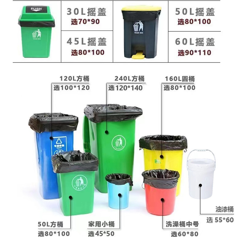 專業(yè)生產(chǎn)大號垃圾袋、特大號垃圾袋、中小號平口垃圾袋等